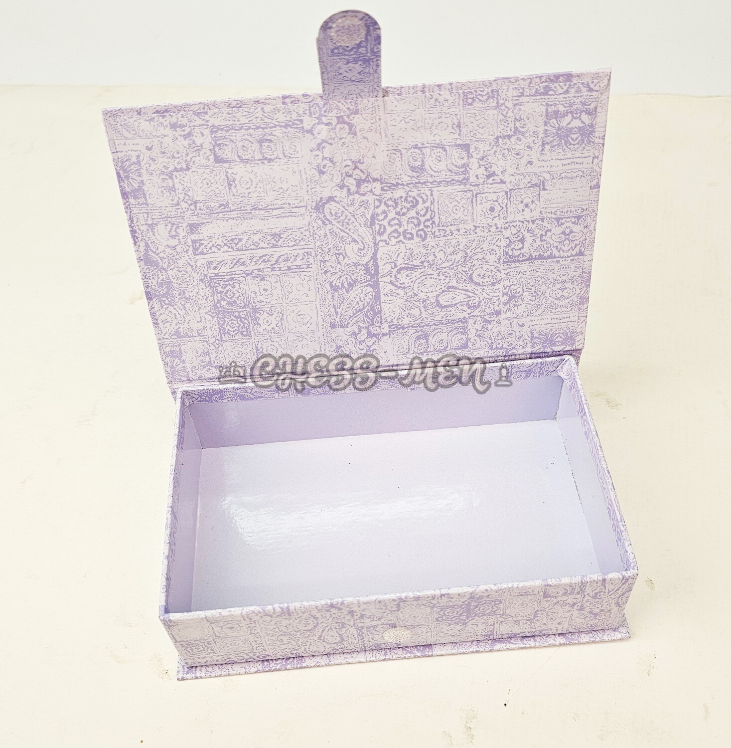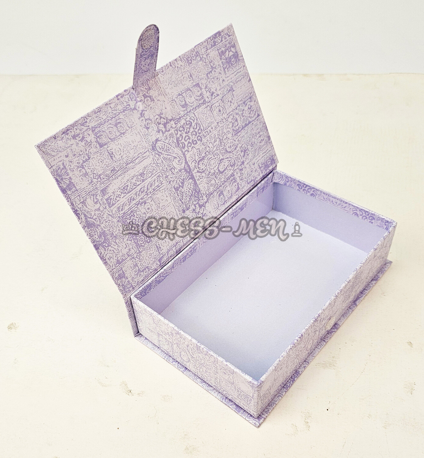 Дно и стенки коробки изнутри оклеены матовой белой бумагой.