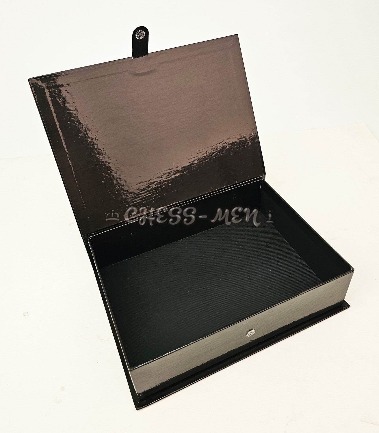 Дно и стенки коробки изнутри оклеены матовой черной бумагой.