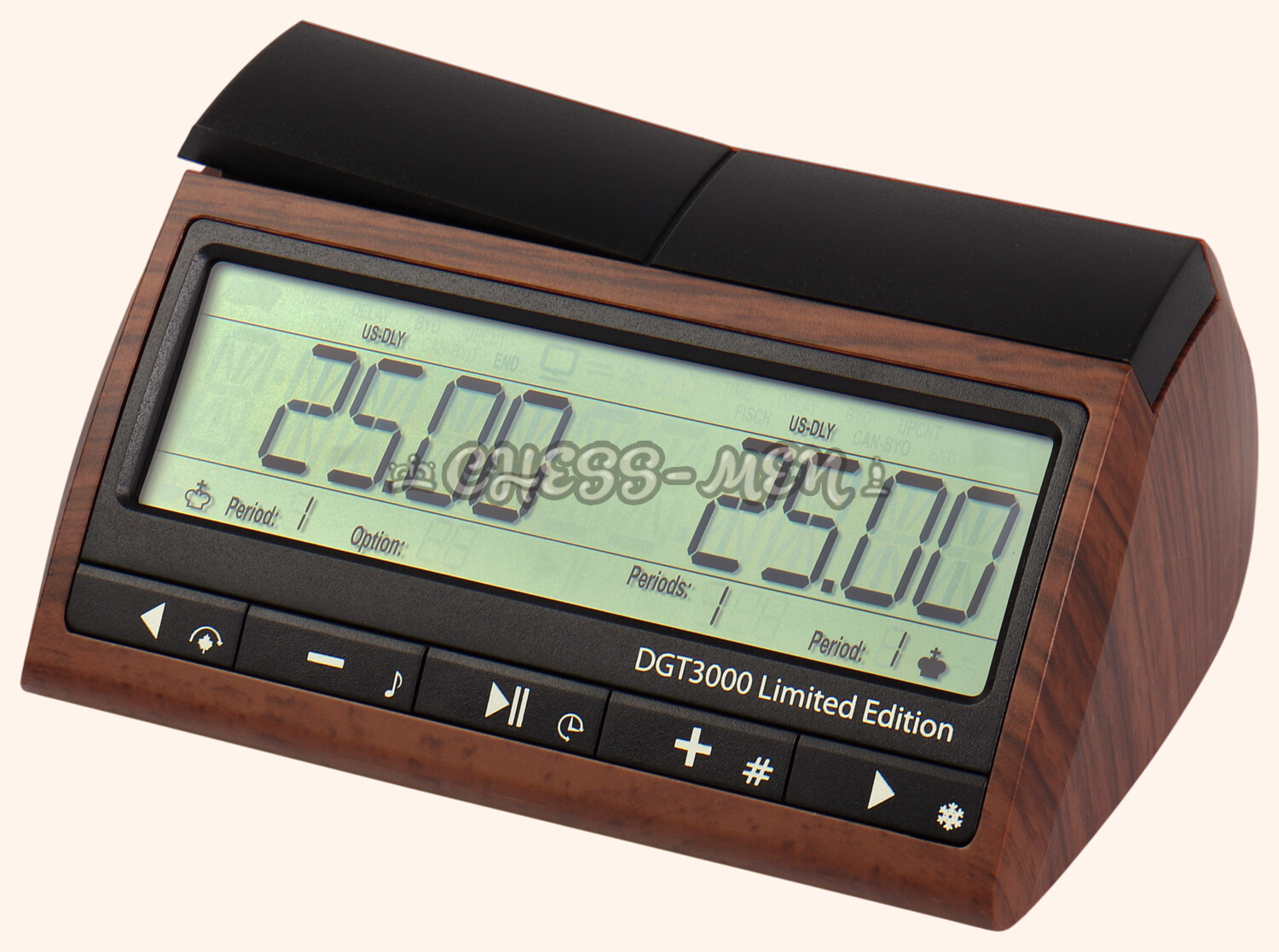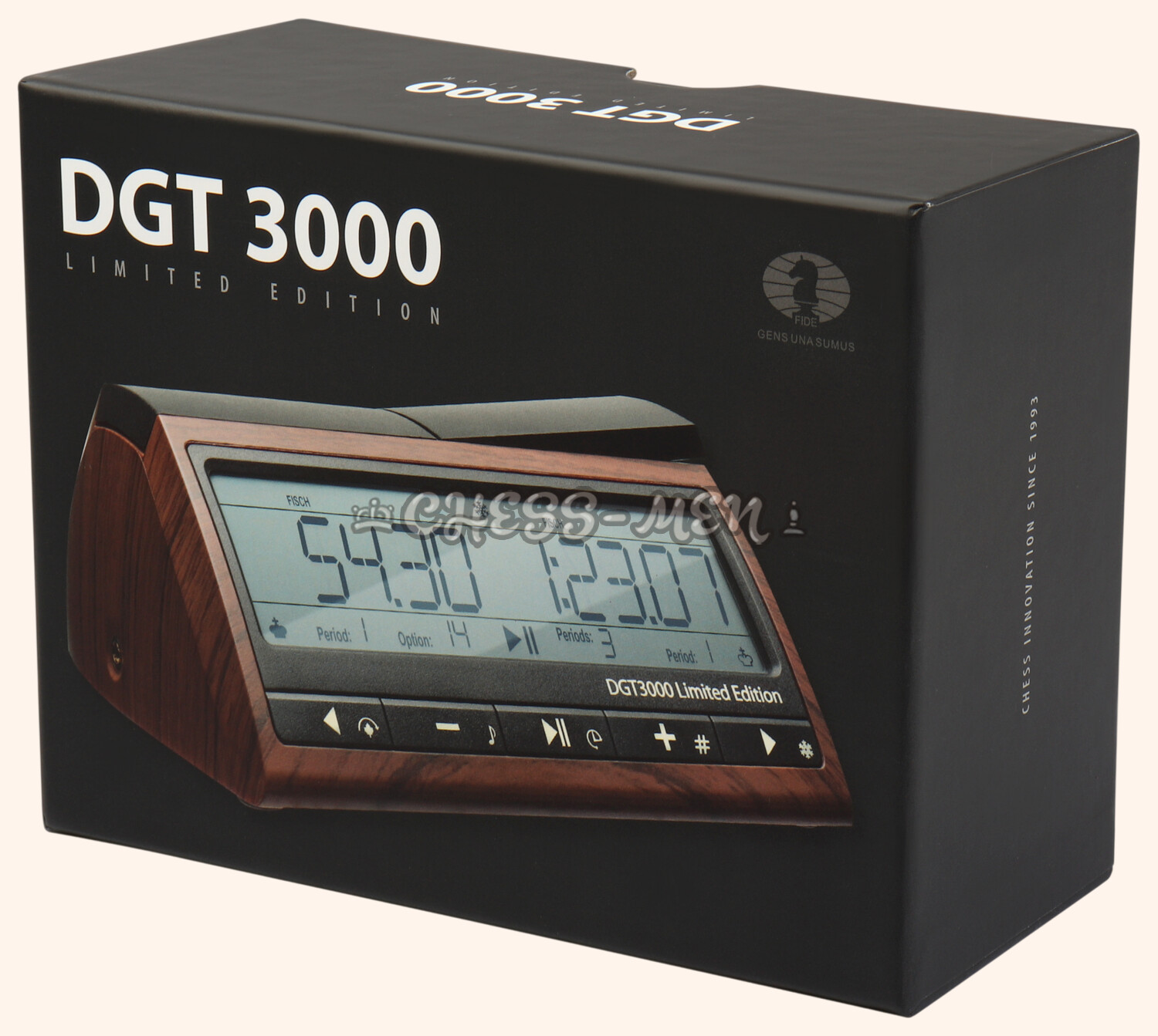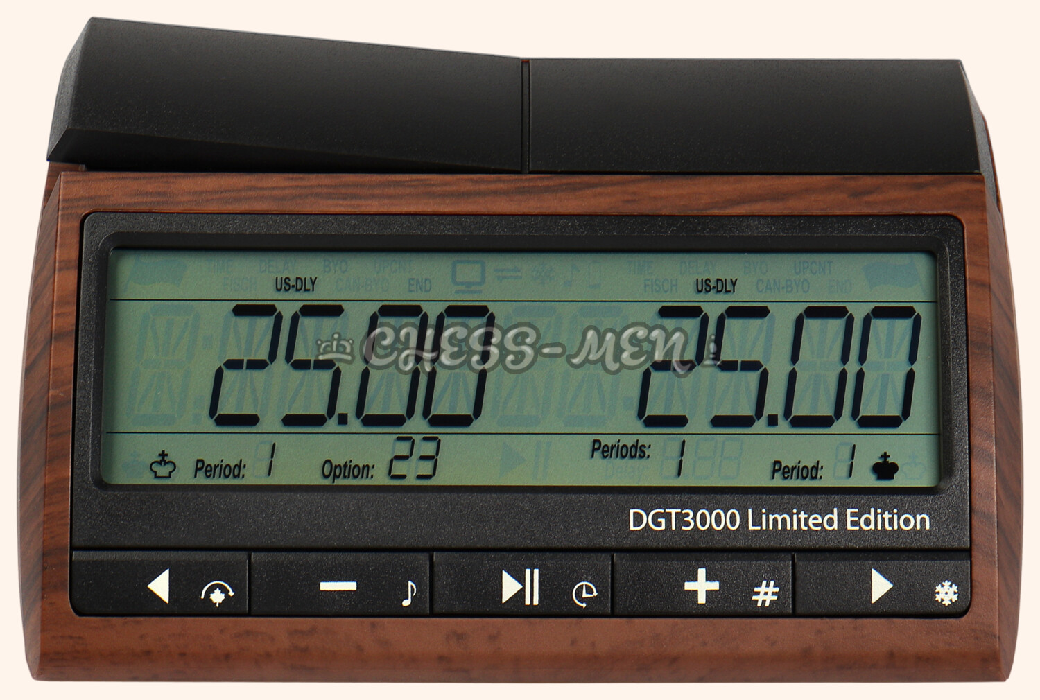 DGT 3000 - профессиональные электронные шахматные часы. Это самые многофункциональные шахматные часы из всех, мировой хит продаж, используются на почти на всех шахматных турнирах, олимпиадах и чемпионатах мира. Разработаны известной голландской фирмой DGT. Идеально подходят для турниров, выполнены в полном соответствии со всеми правилами ФИДЕ, и являются официально одобренными ФИДЕ шахматными часами. Пришли на смену ранее популярной модели DGT XL.