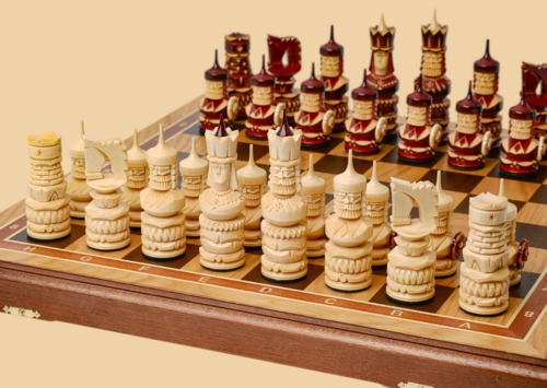 Материал шахматной доски: морёный дуб, клён, ясень и красное дерево