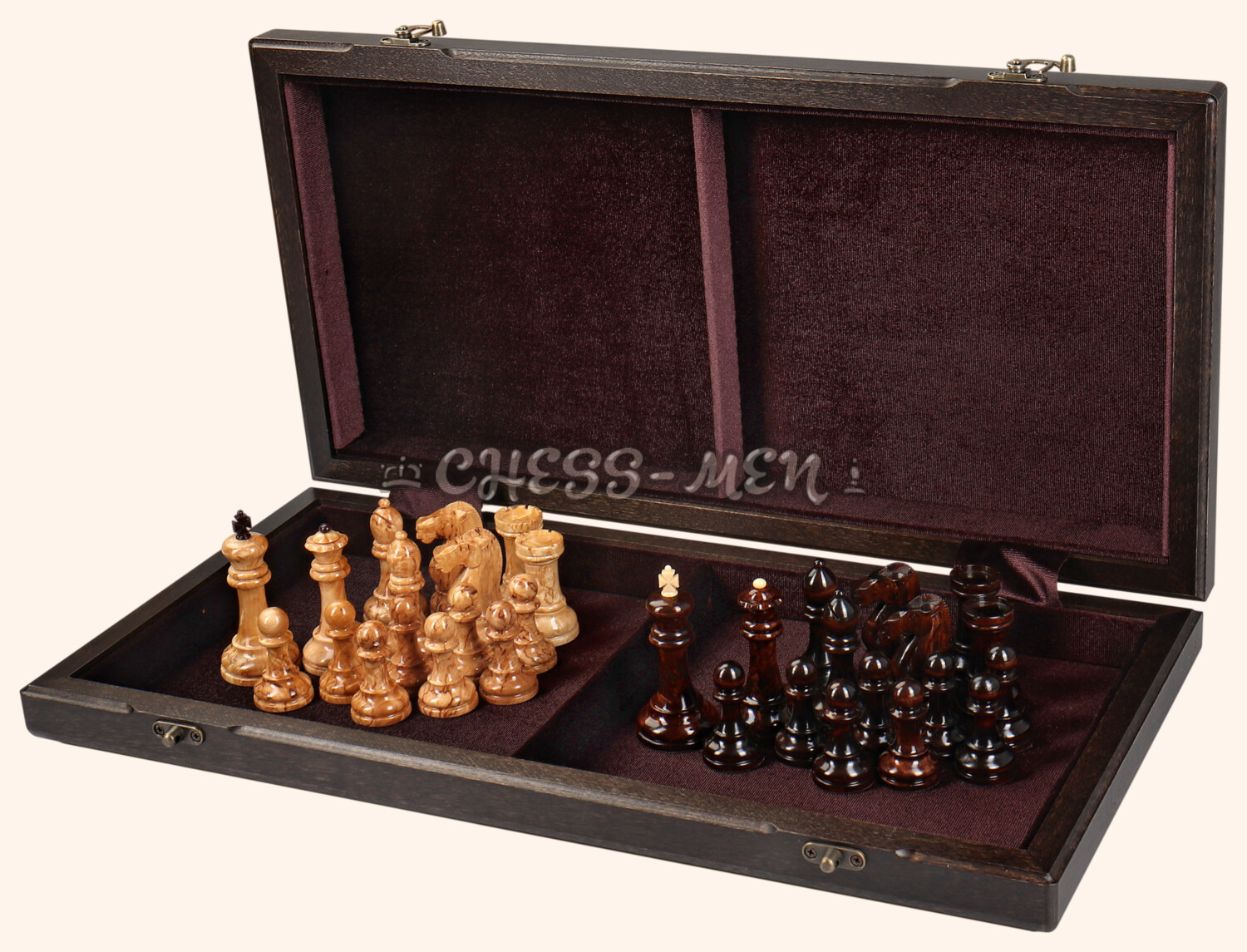 Внутри шахматная доска обшита специальной бархатистой тканью, которая защищает фигуры от ударов и при транспортировке они не гремят внутри неё.