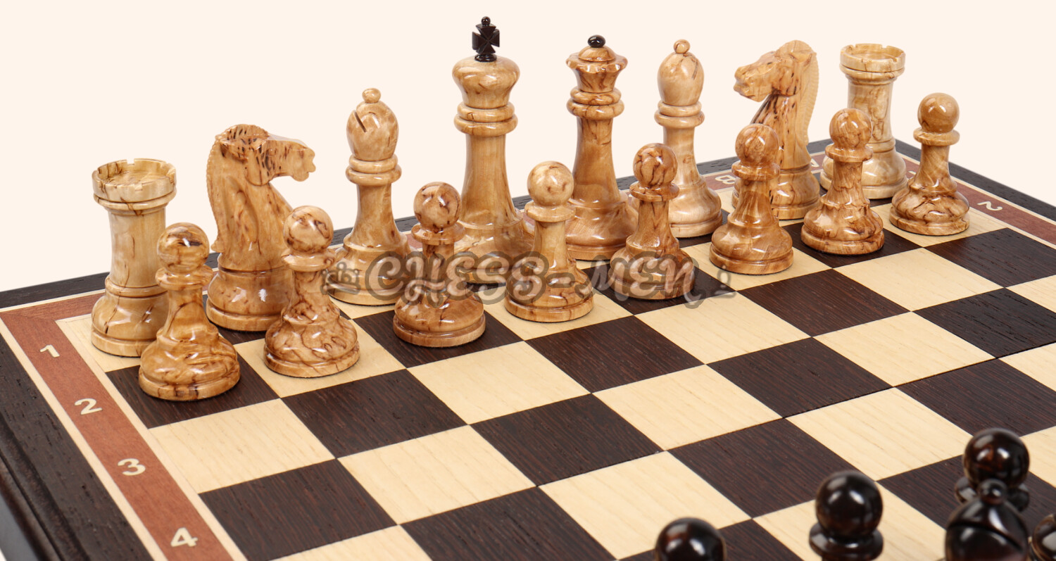 Материал шахматных фигур: карельская берёза
