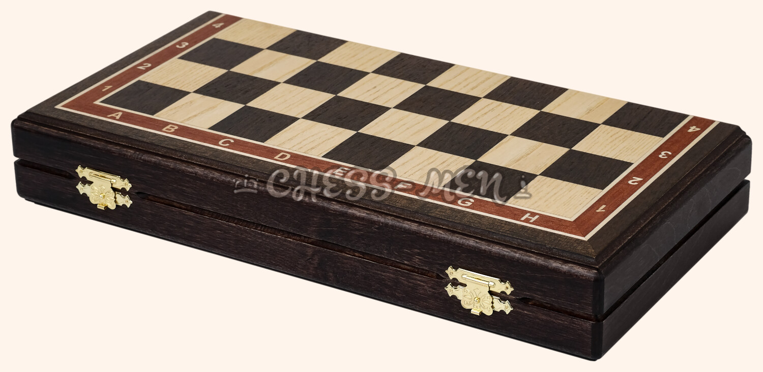 Каркас шахматной доски выполнен из бука. Для дополнительной надёжности на доске предусмотрено 2 замка, которые фиксируют шахматную доску в закрытом состоянии (обычно ставится 1 замок на доску)