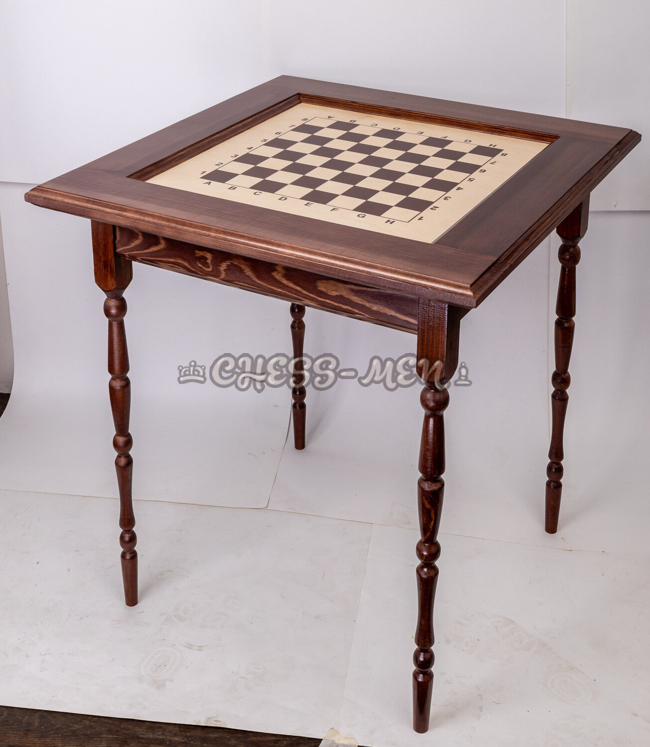 Материал шахматного стола: сосна, тонированная в тёмный цвет