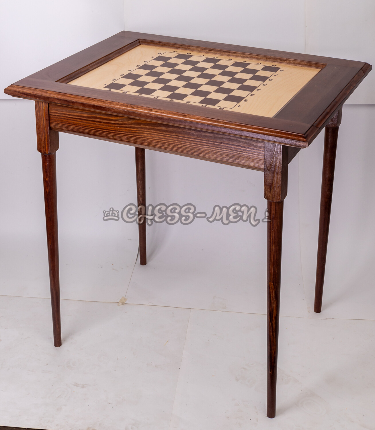 Материал шахматного стола: сосна, тонированная в тёмный цвет